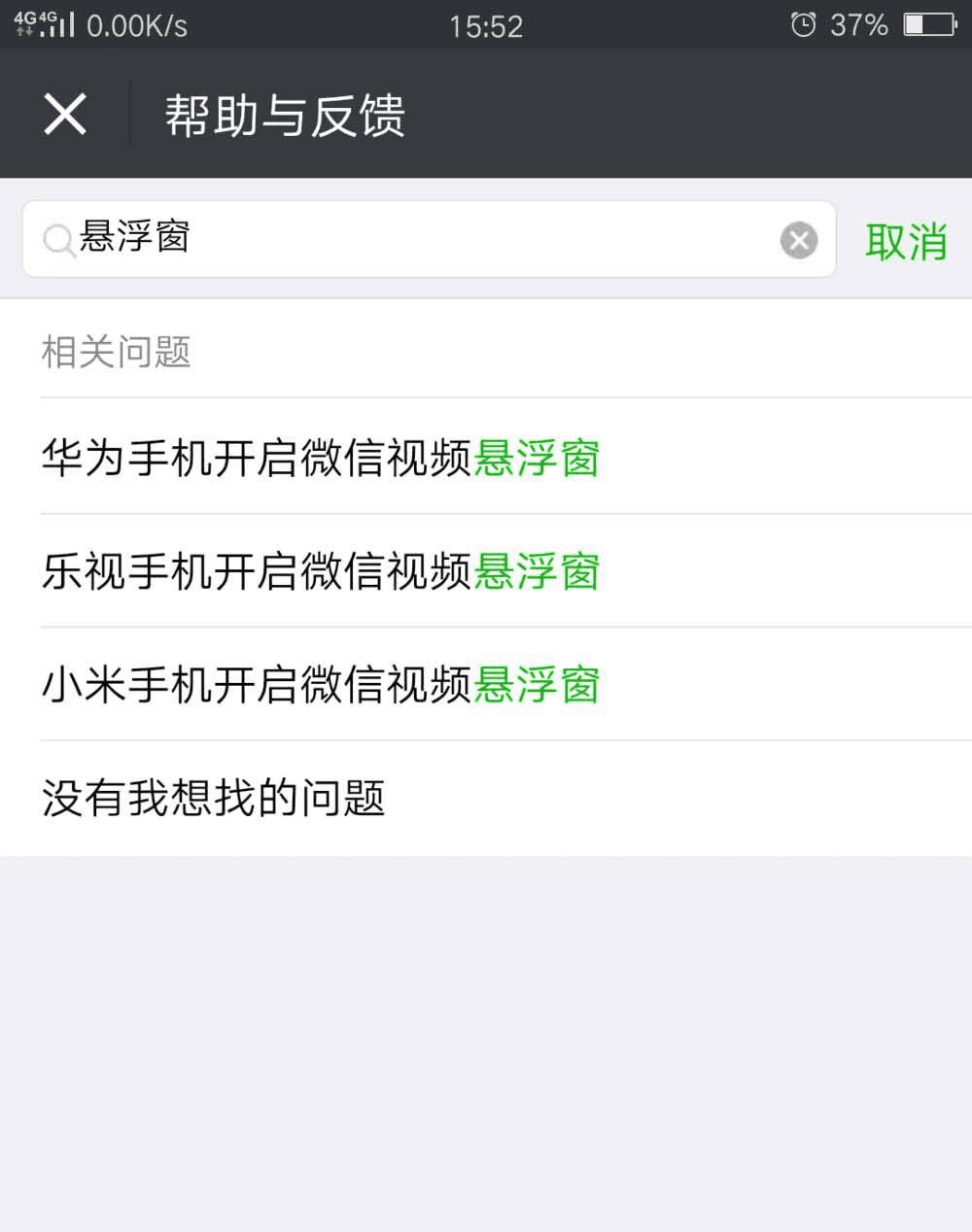 5、在微信“帮助与反馈”也没找到OPPO手机有关悬浮窗的问题,而且笔者也将此问题反馈给微信官网。