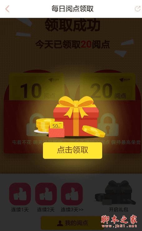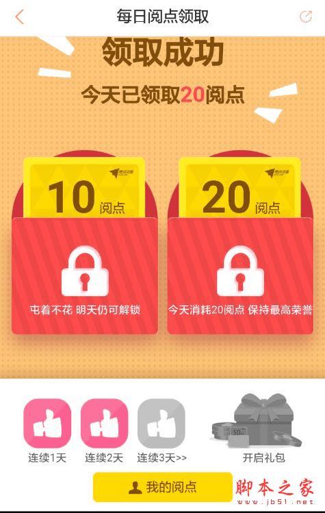 如果昨天消耗了阅点,则今天领取的是20阅点,如图所示。
