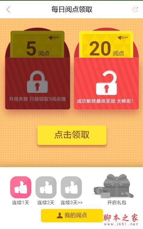 连续三天领取阅点,会有礼包领取,该礼包是随机的。如图所示。