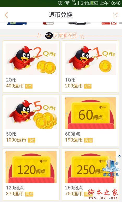 这里的兑换不是现金,而是在逗币商城里用逗币兑换。逗币商城里推出190逗币兑换60阅点、370逗币兑换120阅点、750逗币兑换250阅点活动,以上这些每个账号每个礼拜只能兑换一次哦,还挺不错的。