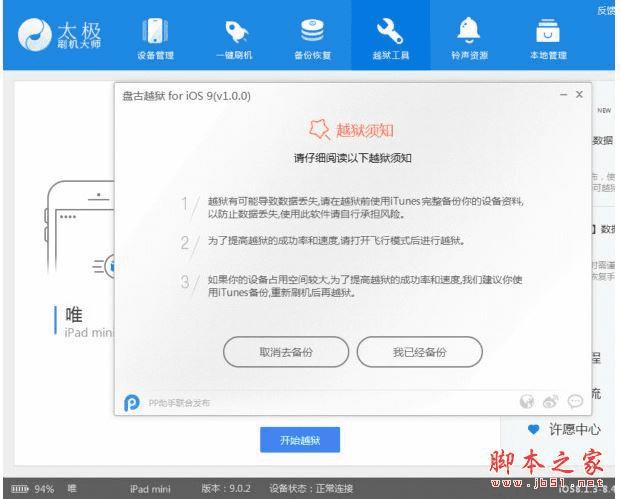 使用太极刷机大师越狱手机的技巧