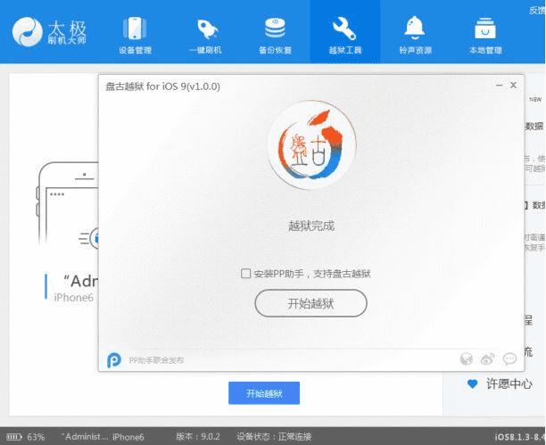 教程结束,以上就是太极刷机大师怎么越狱手机?太极刷机大师越狱苹果手机图文教程的全部内容,如果你也需要越狱手机,那就赶快下载太极刷机大师试试吧!