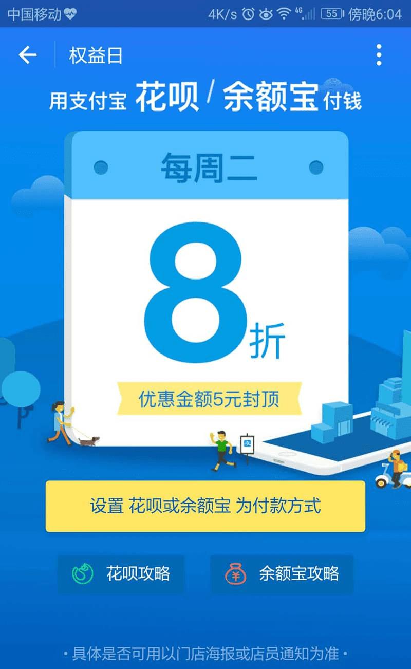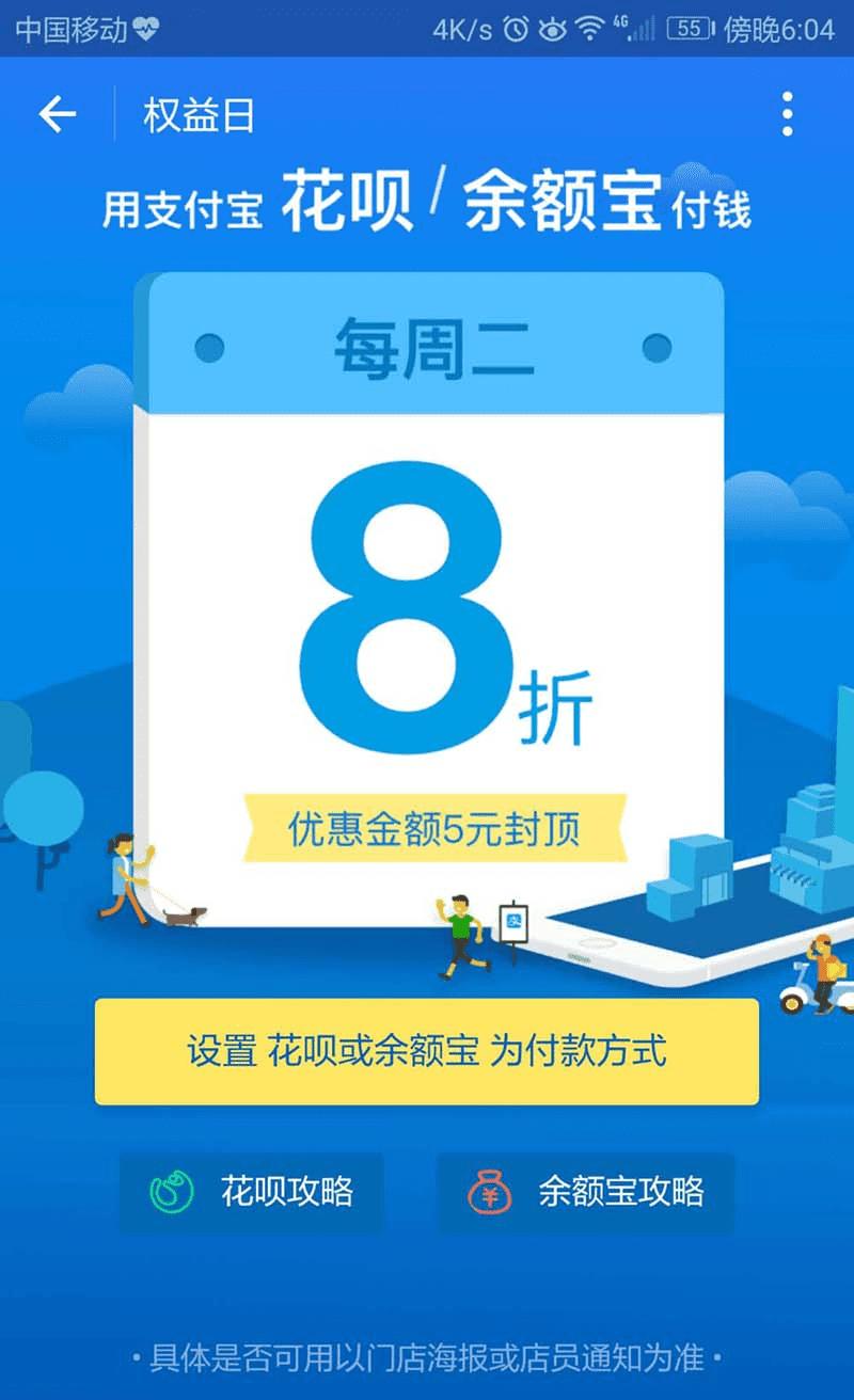 7、现在你就知道了周二权益日,只要使用花呗或者余额宝付款,就可以享受八折优惠哦