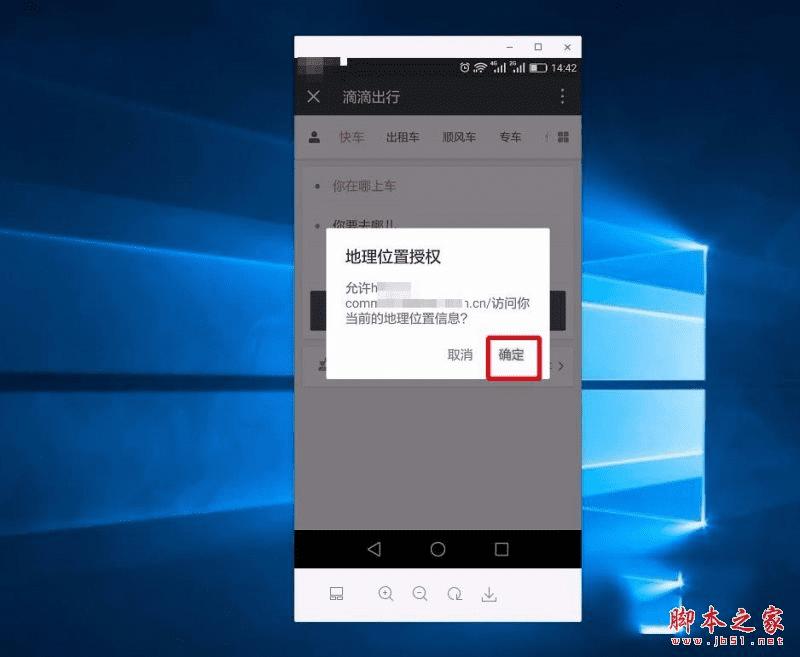 3、在弹出的位置读取对话框,单击“确认”或“取消”进入嘀嘀打车主页面。
