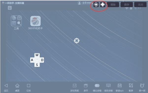 3、射击游戏的准星以及控制移动的方向键在一玩助手顶部都可以看到,点击它们后再点击一次屏幕即可将其放到一玩模拟器上了,拖动他们即可调整它们的位置;