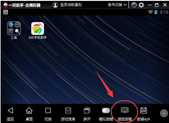 1、首先打开电脑中的一玩助手,然后在其界面底部的功能列表中就可以看到“指定按键”的功能了;
