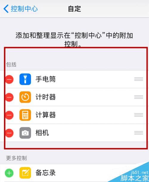 进入自主控制以后,我们就可以看到手机已经在控制中心添加的快捷键,我们可以看到没有录制屏幕的。
