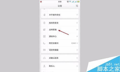 向下拉我们会看到有一个“应用管理”菜单,我们点击。