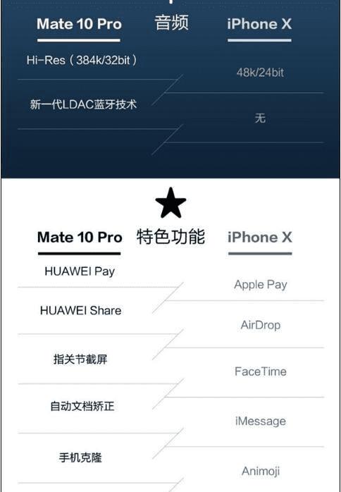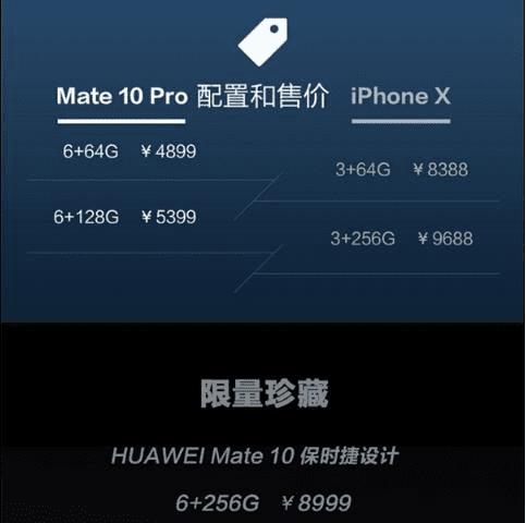 iPhoneX与华为Mate10 Pro配置价格全面对比图: