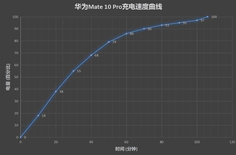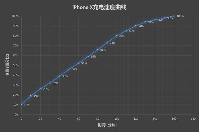 可以看到即便在10%的优势开局下,iPhone X的充电速度依然慢如蜗牛,落后HUAWEI Mate 10 Pro近1个小时。