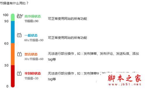 在B站中,还有一种叫节操值的东西,如果这个数值降到一定程度你也会被进行半封停状态(无法进行部分操作,如:发布弹幕、发布评论、发送私信、添加tag等)