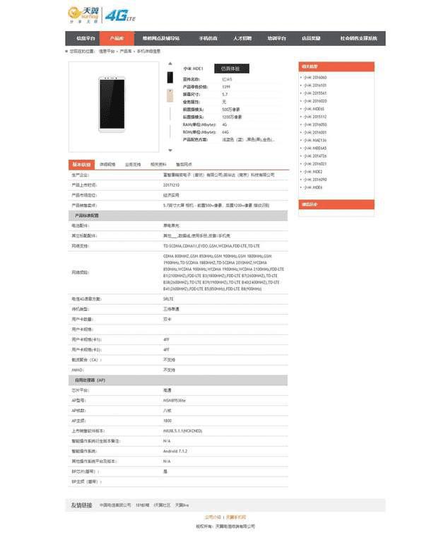 规格方面,屏幕为5.7寸,分辨率1440×720,处理器标注为MSM8953 Lite,八核心1.8GHz,那就应该是骁龙625的降频版,内存4GB,存储64GB,最大可扩展128GB,摄像头1200万像素后置和500万像素前置,电池容量3300mAh,双卡双待,预装安卓7.1.2 MIUI 8.5.1.1操作系统。