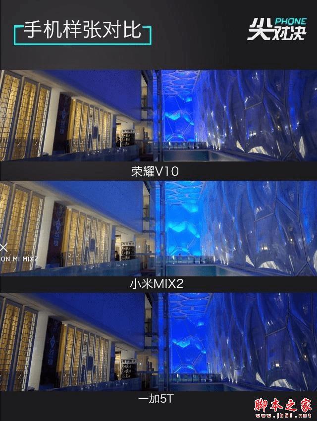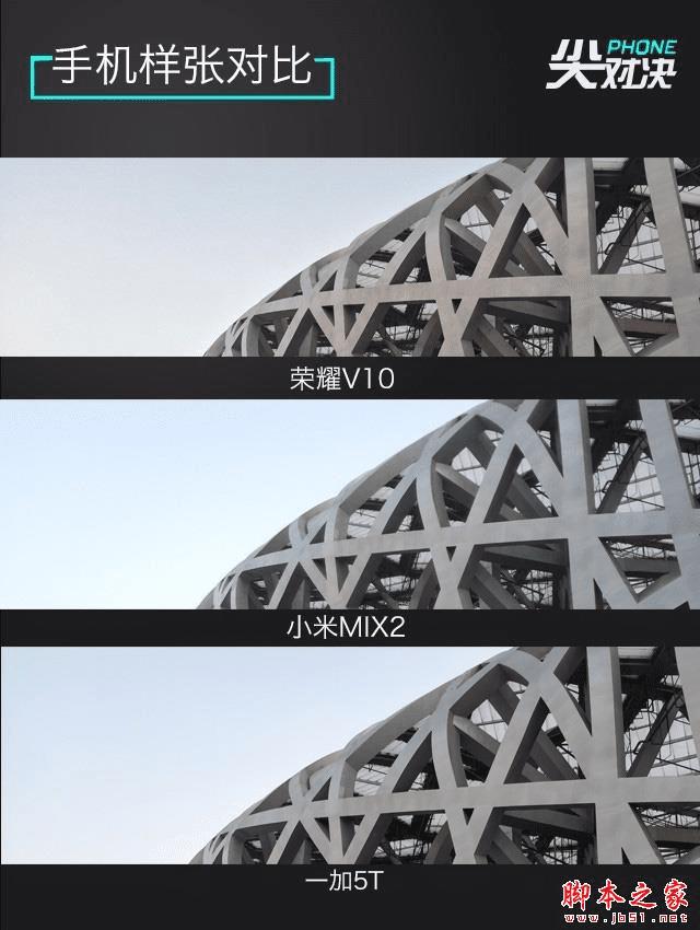 可以看到,一加5T的解析力更好,画面锐度更高。其次是荣耀V10,同样保留细节较多,小米MIX2稍差。