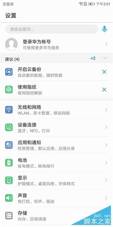 EMUI 8.0系统中最大的外观改变便是设置界面,通过左滑可以快捷进入每个设置中。