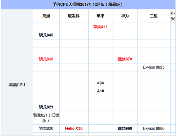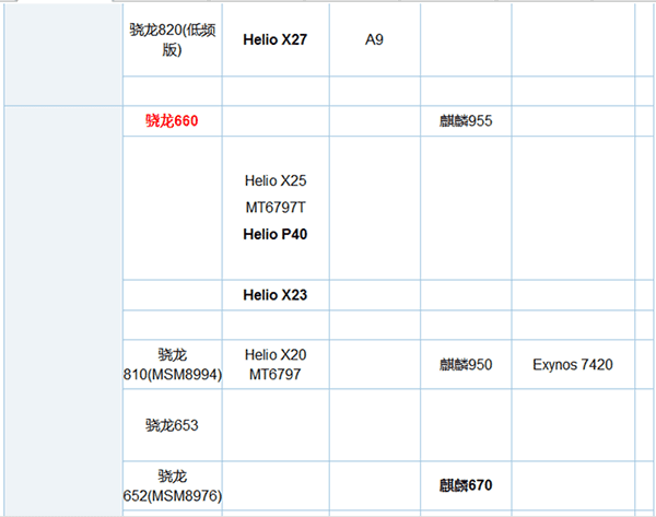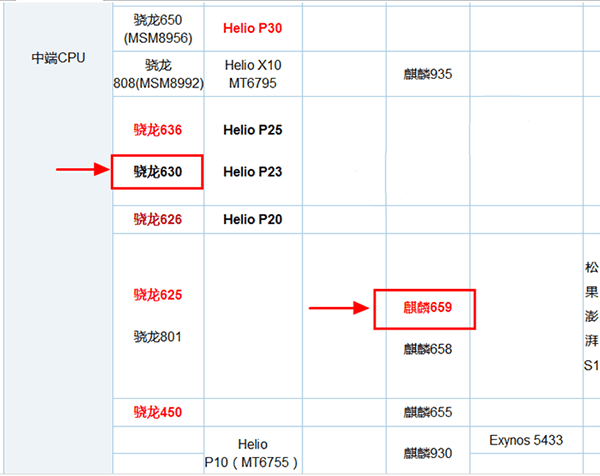 高通骁龙630和麒麟659在手机CPU天梯图中的位置