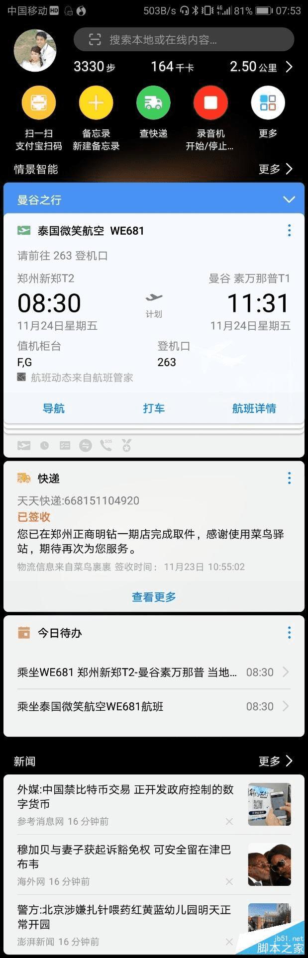 如今很多手机都支持负一屏功能,EMUI的“情景智能”无疑是最强大的,可以自动、智能地集各种生活服务于一身,EMUI 8.0更是大大强化。