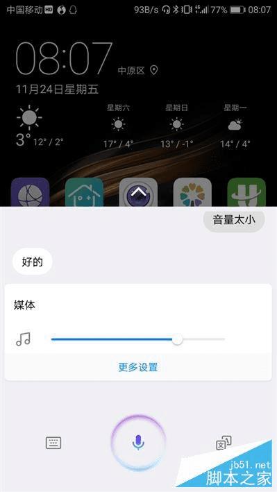 除了日常各种查询、安排,它还能理解很多功能设置,比如说想调节音量,直接说一句音量太大后者音量太小,就会直接帮助你调低或者调高音量,同时出现音量调节滑竿,允许你再次手动调节。