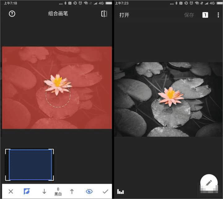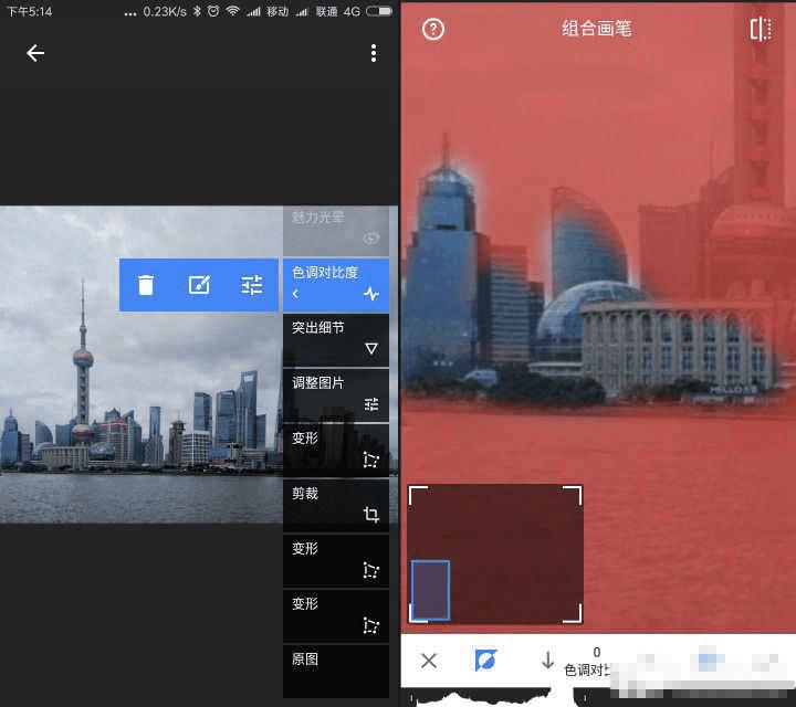 Snapseed的蒙版比较隐蔽,用案例来说明。
