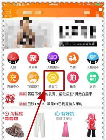 2、进入淘宝首页以后,点击“领金币”按钮,打开进入下一步操作,如下图示。