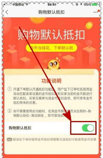 在淘宝中设置购物时默认抵扣淘金币的方法