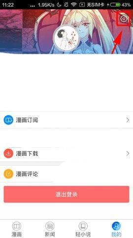 1)我们先打开动漫之家这个软件点击【我的】来到个人界面,接着再点击右上角的【齿轮】进入设置。(如下图)
