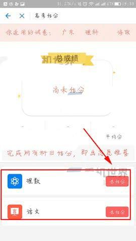 2)进去后我们点击【高考估分】,然后点击科目旁边的【去估分】进行估分。(如下图)