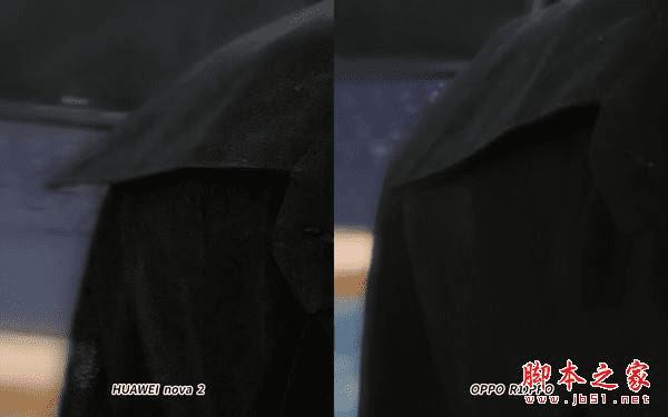 两款手机在自拍时都难免会碰到一些小瑕疵,比如把人物虚化而背景清晰,但总体来说,放到朋友圈或者微博完全够用了,不必吹毛求疵。放大看一下细节,如下图,两款手机边缘虚化能力都中规中矩,不过HUAWEI nova 2在衣服的细节上还是保留更为完整。