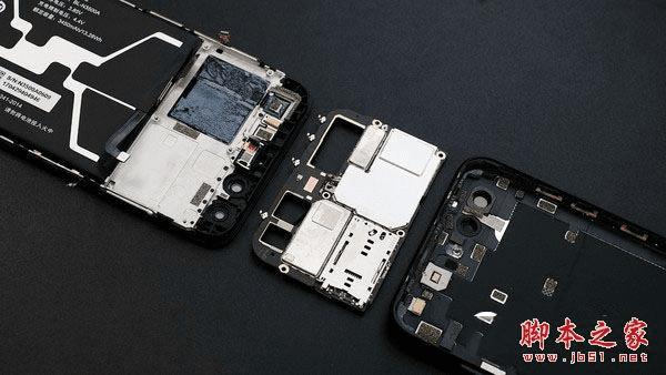 金立S10内部结构采用较为成熟的三段式布局,上部分为主板,下面为副板,而中间则是电池仓。我们可以发现金立S10的主板/副板面积压缩得相当小,因此可以放进一块容量高达3450mAh的电池,这对于一台5.5英寸,7.35mm厚度的机型来说已经不小了。
