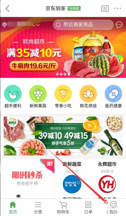 5、当然,上述的操作可以不用安装“京东到家”APP,在“京东”APP端首页即可找到“京东到家”频道,操作如上。