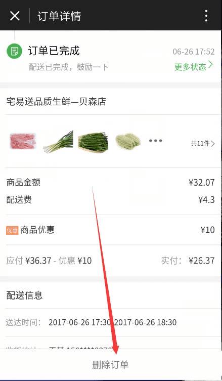 注:只能删除已完成的订单,进行中(待配送或预订单等)的单子不支持直接删除的。