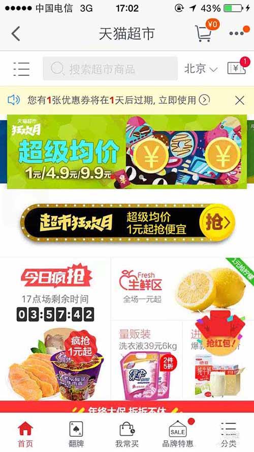 在天猫app中查看天猫超市优惠券的到期时间的方法