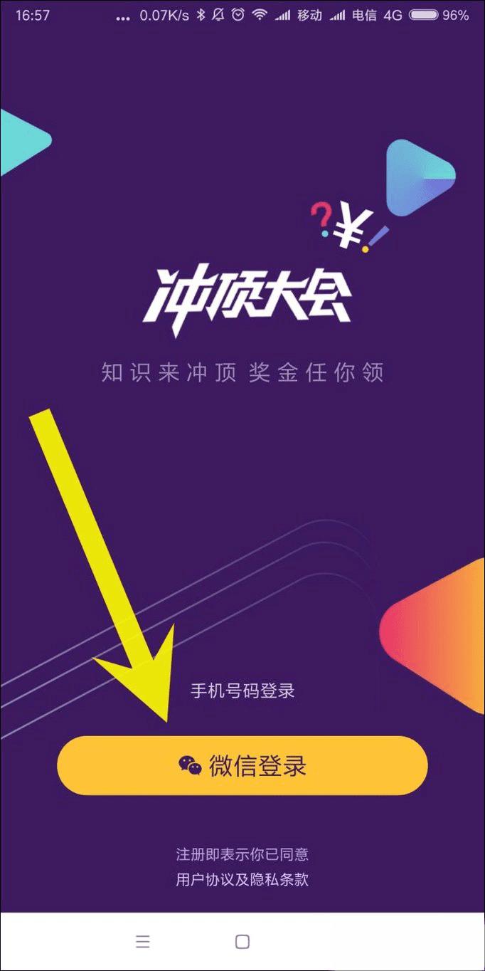 2、接着我们需要登陆冲顶大会,我们可以使用手机号登录,或者使用微信登录。