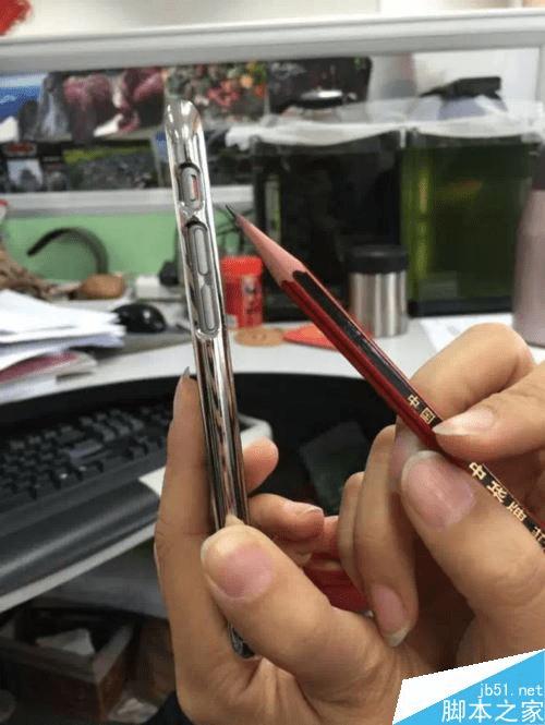 iPhone的侧面有一个小拨片,当拨片拨到下面的时候,就是静音模式,如果打开了“静音模式振动”,那么这时候有信息提示进来,手机是会振动的,下图就是静音模式的拨片状态。