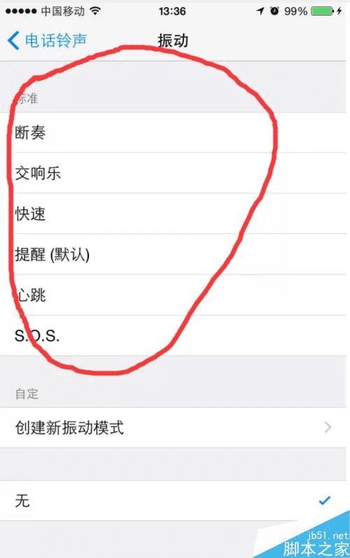 找到问题就好办了,我们从无这里点进去,给手机选择一种振动模式就好了,选好了之后,你的手机就可以振动了!