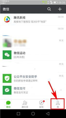 1)点开微信APP,首先点击首页右下角处的【我】,然后进入【钱包】;(如下图)