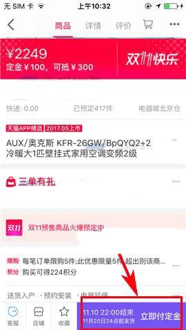 今天的双十一,淘宝特别推出的预售新玩法,即买家以一定数额定金预购活动商品,在双十一当天交付尾款时,定金可抵数倍于本身的金额使用。,该怎么预付定金呢?下面我们就来看看详细的教程。