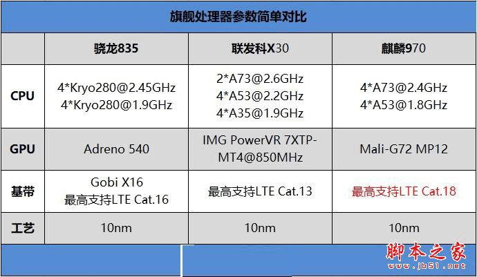 可以看到相较于同期旗舰处理器,麒麟970在配置上并没有拉开较大差距,不过因为麒麟970主打AI性能,这也是在情理之中。