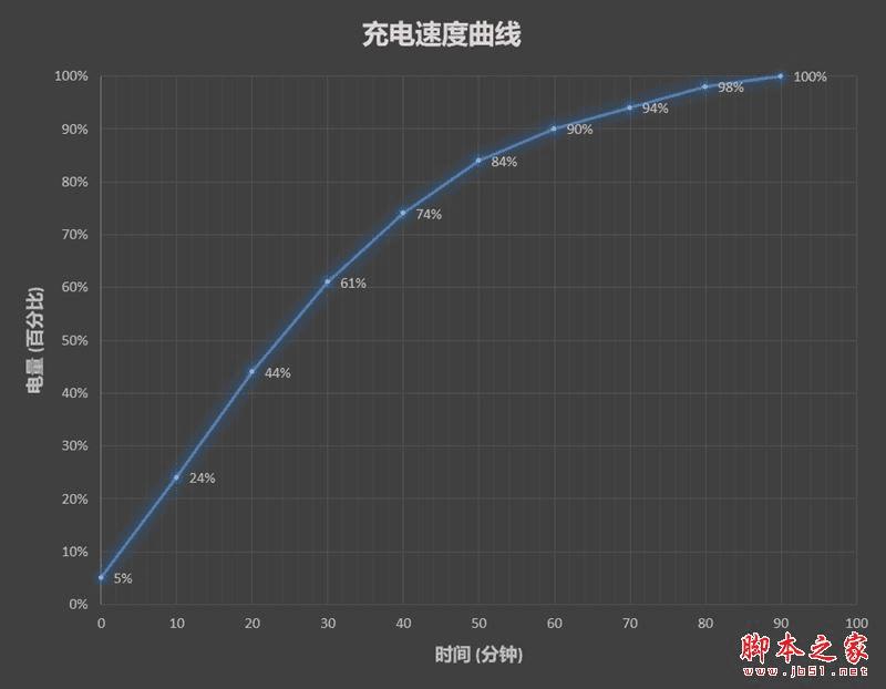 HUAWEI Mate 10标配一颗5V4.5A充电头,最高功率22.5W,充电测试从5%电量开始,共耗时90分钟充满,30分钟充入了56%的电量,相当暴力。