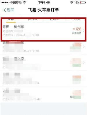 5、跳转页面后,我们可以看到我们订票成功的全部记录。然后点击我们需要退款的车次。