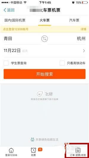 在支付宝中退火车票的步骤