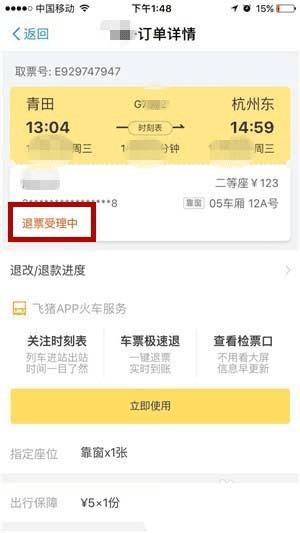8、申请成功后,便会在跳转的页面中,显示“退票受理中”。
