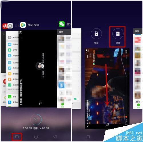 点击分屏--然后在近期任务中选择另外一个分屏应用即可实现分屏(以微信为例)。