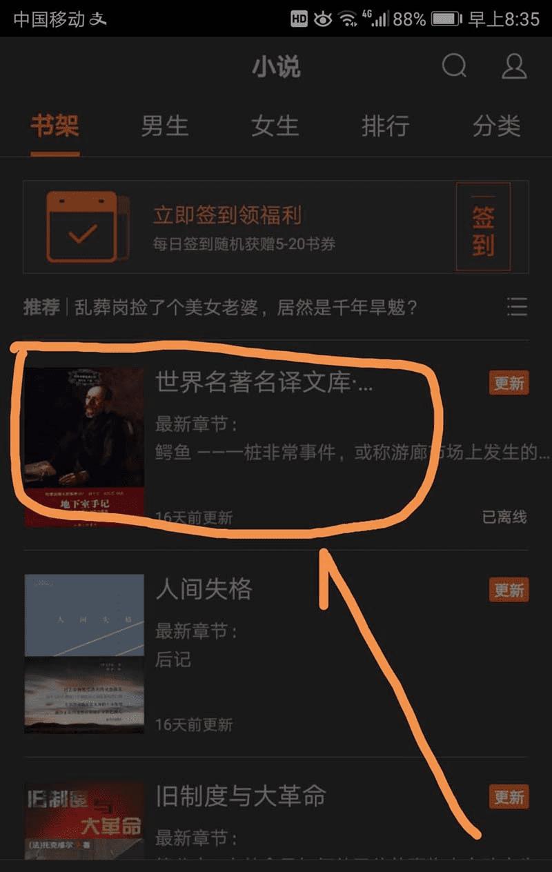5、进入小说界面点按一部著作,如下图所示。