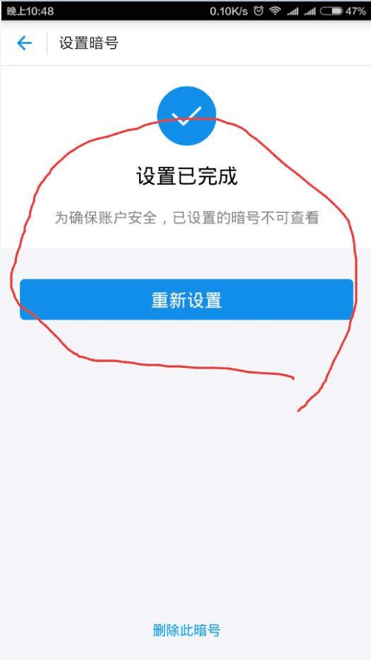 5、在弹出的暗号设置界面上,如下图所示,直接点击重新设置,按提示步骤拍照或者画图设置即可