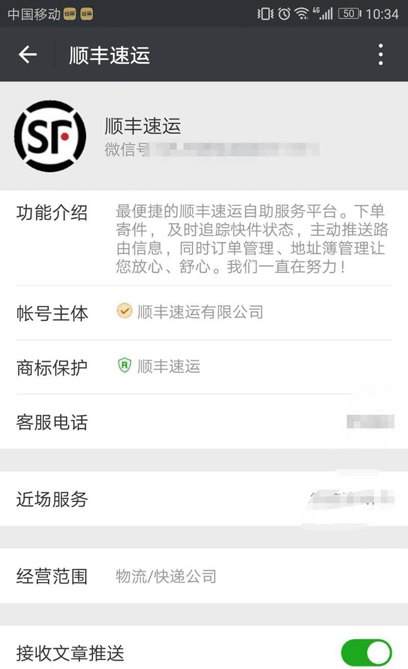 1、打开你的手机微信,搜索顺丰的官方的公众号,进入顺丰公众号。