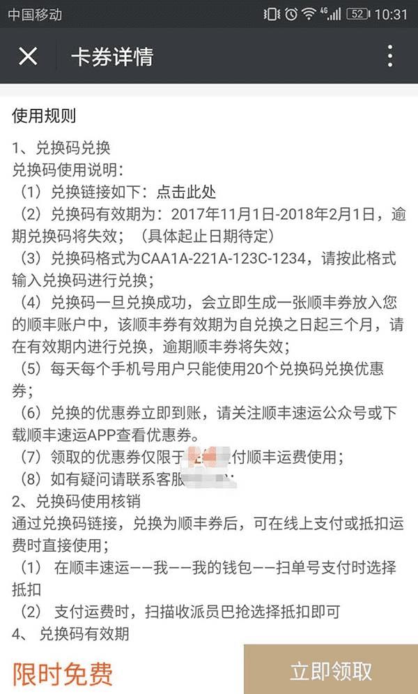 手机微信进入顺丰的公众号,下单寄快递,付款选择在线付款,然后付款的时候选择优惠劵抵扣,就可以立即抵扣相对应的金额了。