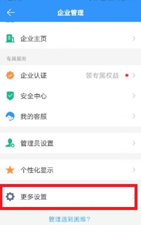 3、在“企业管理”的众多选项中,找出并点击“更多设置”这四字。