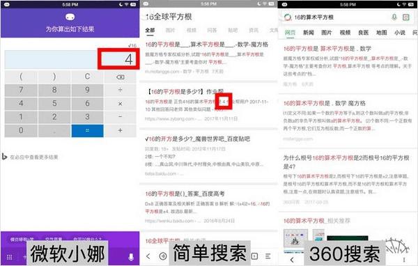 可以看到,尽管主持人语速过快并且带有误导的“黏连”话语,还是有不少人工智能发挥不错:Bixby和微软小娜的智能型较强,不仅识别出问题,还将计算器打开并算出结果,得分10分;简单搜索通过“百度”得出正确答案,位于第二个词条上不怎么显眼的位置,得分8分;360搜索需要点进去查看答案,并不能够从首页词条看出,得分7分;Siri及搜狗搜索或许受过快语速的影响,没有准确的识别出问题,得分0分。
