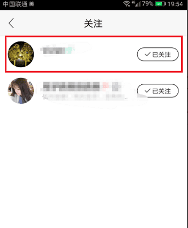 3、进去关注的界面,找到要取消关注的,点击旁边的已关注,如下图所示: