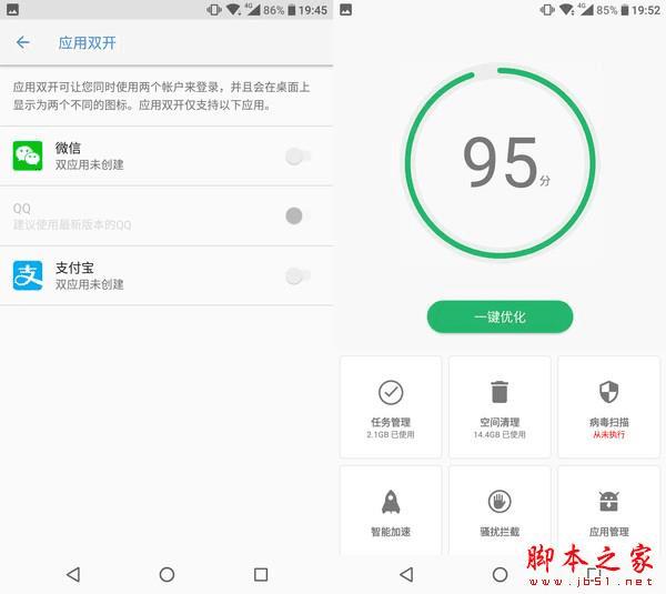 即使是原汁原味的Android,HMD也为国内用户的使用提供了不少接地气的功能,例如应用双开,虽然深藏在设置选项里,但也能支持QQ、微信这些基本应用。还有集成的手机管家,提供拦截骚扰、定期清理垃圾的选项,比较实用。